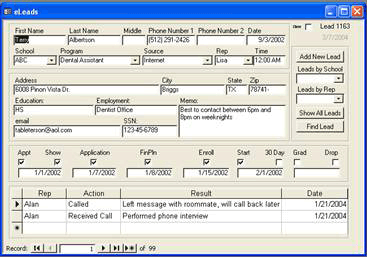 | Ability to Track Ongoing Status of Each Lead (follow-up phone calls, letters, and all conversion detail) |